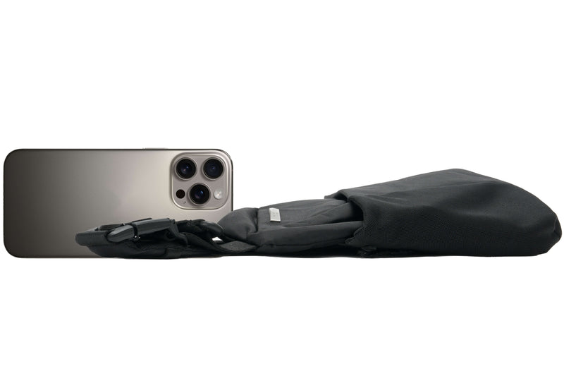 Weekend city explorer mode: Holds power bank, iPhone, pocket cam, 600ml bottle. Still looks slick.Expanded the side pocket for my DJI Pocket. Slim bag carrying bulky gear feels illegal.